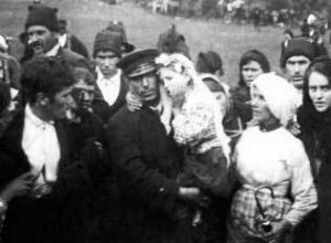 Jacinta siendo llevada lejos de Cova da Iria después de una de las apariciones.