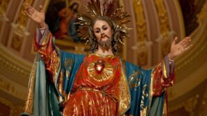 Una visión de Nuestra Señora de los Dolores, sin la espada clavada en su pecho, y de Nuestro Señor abrumado por el dolor camino al Calvario.